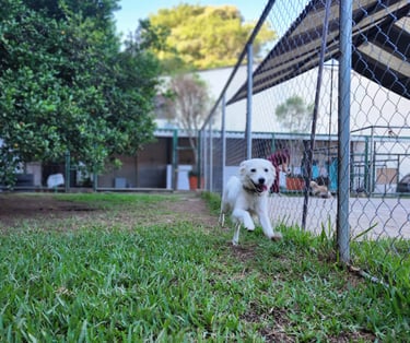 Nuestre espacio esta diseñado para proporcionar un ambiente tranquilo asegurando que tu peludo se sienta como en casa mientras disfruta de la convivencia con otros huéspedes.